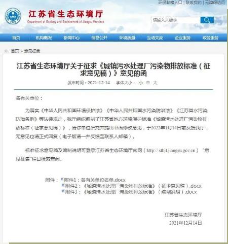 江蘇省征求《城鎮(zhèn)污水處理廠污染物排放標(biāo)準(zhǔn)》意見(jiàn)!