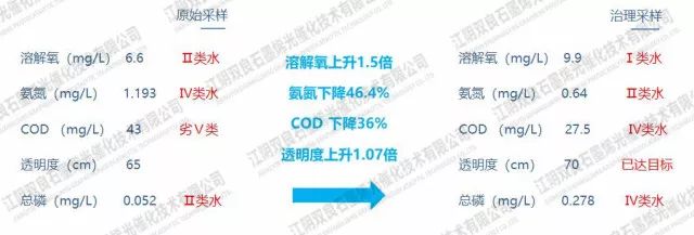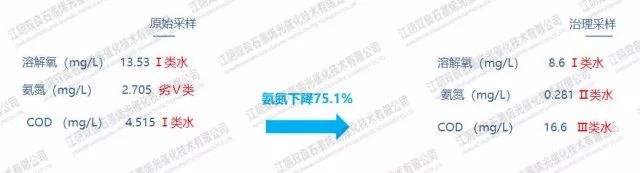 治理后為Ⅲ類水標準,其中氨氮指標大幅度下降。gaP新型光催化網(wǎng)_水庫治理_河道治理_水生態(tài)修復_水環(huán)境治理與修復_江蘇雙良環(huán)境科技有限公司
