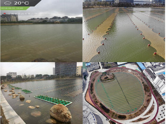 項(xiàng)目概述:高潮湖位于南昌市工業(yè)園區(qū)內(nèi),金鷹路以北,航空路以西,是一個(gè)封閉型景觀湖,呈圓形。周邊為硬質(zhì)岸坡,湖岸上四周為景觀綠化帶。湖岸以內(nèi)約4m范圍為淺灘,用堆石固定。湖底由外到內(nèi)逐漸加深,水深約1.5-2m。由于前期高潮湖已徹底改造,湖中無(wú)任何水生動(dòng)植物,水中生態(tài)基本被破壞,水體失去自凈能力,水體較渾濁。80T新型光催化網(wǎng)_水庫(kù)治理_河道治理_水生態(tài)修復(fù)_水環(huán)境治理與修復(fù)_江蘇雙良環(huán)境科技有限公司