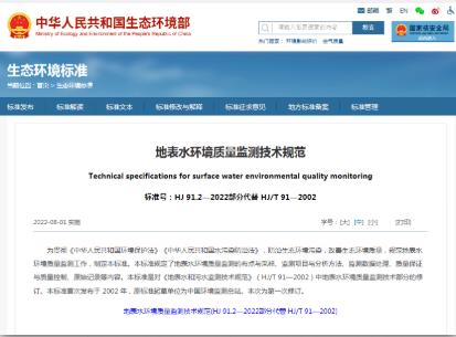 《地表水環(huán)境質(zhì)量監(jiān)測技術(shù)規(guī)范》(HJ 91.2—2022)xDh新型光催化網(wǎng)_水庫治理_河道治理_水生態(tài)修復(fù)_水環(huán)境治理與修復(fù)_江蘇雙良環(huán)境科技有限公司