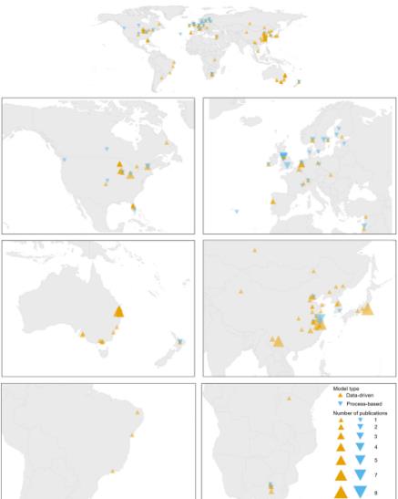 PB或DD的使用是隨著時(shí)間的推移而改變的。在2013年之后,DD模型的比例有所增加(圖2)。在澳大利亞、美國(guó)和日本,DD預(yù)報(bào)模型應(yīng)用的比例很高,而PB方法在英國(guó)和北歐國(guó)家更常見(jiàn)(圖3)。