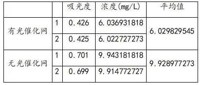 通過對(duì)比有無光催化網(wǎng)中甲基橙溶液的濃度對(duì)比,進(jìn)一步確定,光催化網(wǎng)對(duì)凈化水質(zhì)有一定的效果。FNZ新型光催化網(wǎng)_水庫治理_河道治理_水生態(tài)修復(fù)_水環(huán)境治理與修復(fù)_江蘇雙良環(huán)境科技有限公司