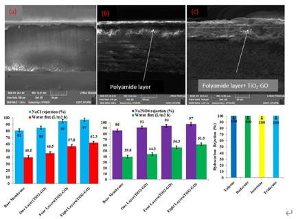 2的摻入由于膜表面電荷、粗糙度和親水性的變化,膜基質(zhì)中的 -GO 復(fù)合物增強(qiáng)了膜性能,達(dá)到了62 LMH (Lm -2 h -1 ) 滲透通量、97% 的鹽截留率和 100% 的油截留率。