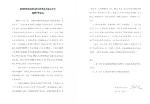 專家組通過實地踏勘,聽取匯報,審閱資料及現(xiàn)場質(zhì)詢討論后,一致認(rèn)為:該技術(shù)處于國際領(lǐng)先水平,是一種綠色、可持續(xù)、環(huán)境友好的新型水環(huán)境治理技術(shù),在飲用水水源地、湖泊、河道具有良好的應(yīng)用前景。N3K新型光催化網(wǎng)_水庫治理_河道治理_水生態(tài)修復(fù)_水環(huán)境治理與修復(fù)_江蘇雙良環(huán)境科技有限公司